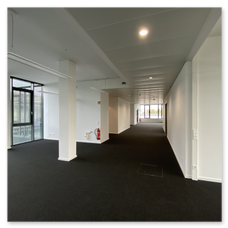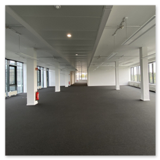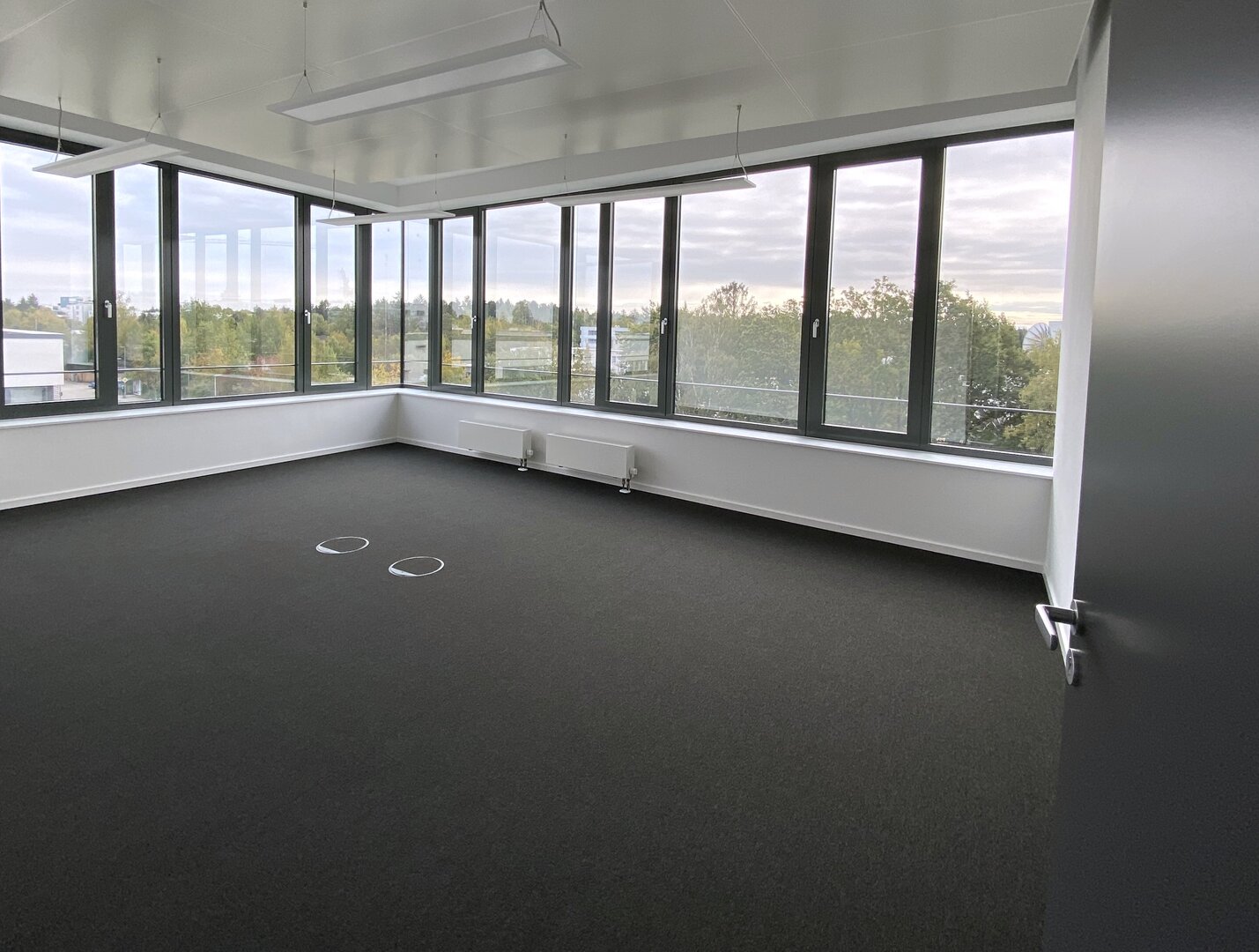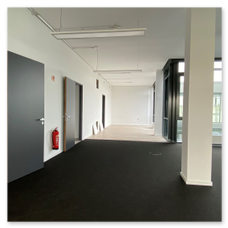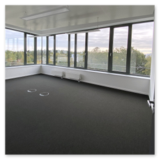 • Hohlraumboden mit Teppichbelag in den Büroflächen